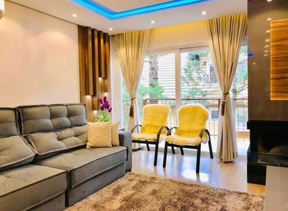 Excelente apartamento duplex finamente mobiliado, decorado e equipado com 200M² privativos, possui 4 dormitórios sendo uma suíte principal no andar térreo, com sacada e closet, e uma no andar superior, ampla sala de estar com uma linda sacada e vista para a avenida Borges de Medeiros, sala de TV aconchegante com lareira e sacada lateral, sala de jantar, cozinha com churrasqueira, área de serviço e um lavabo. Totalmente climatizada com splits, aberturas em PVC e aquecimento por junker a gás. O condomínio possui infraestrutura completa (piscina aquecida, hidromassagem, sauna, sala de jogos, brinquedoteca, parquinho aberto, 2 salões de festas, academia, chimarródromo aberto com lareira, elevador, portaria 24h e 2 vagas de garagem. Localização: Apartamento localizado na Rua Lavras do Sul, n° 111 – Carniel – Gramado/RS acesso privilegiado, já que se encontra próximo à Avenida das Hortênsias que liga as cidades de Gramado e Canela e as principais atrações turísticas da região.