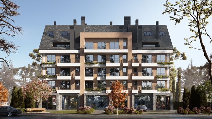 Empreendimento residencial e comercial com duas torres.