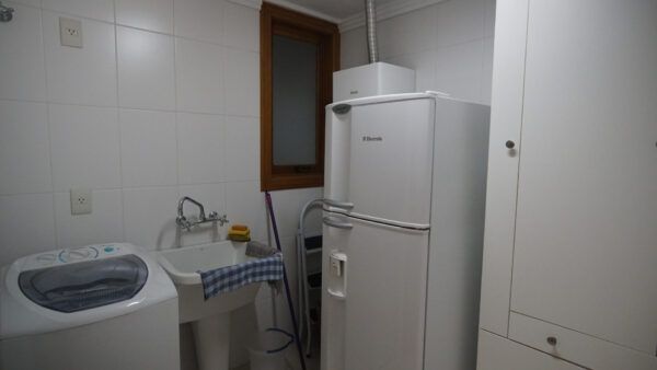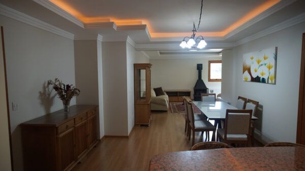 Possui aberturas internas e externas em madeira, acabamento em gesso. piso laminado, churrasqueira, lareira, sacada fechada em vidro, gás central individual, e central anti-incêndio.