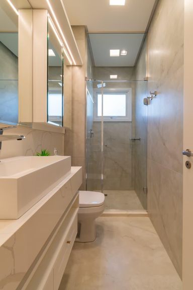 Todos os ambientes possuem splits instalados, e espera para calefação, aquecedor de passagem instalado, teto rebaixado em gesso com ótima iluminação e ambientes com automação via Alexa.