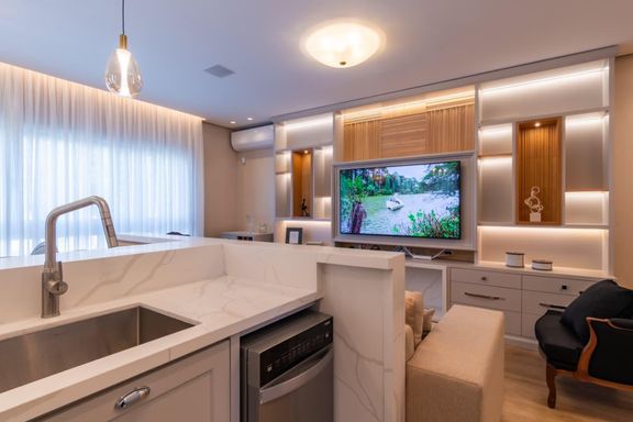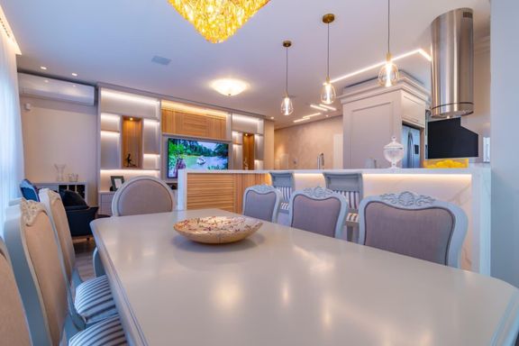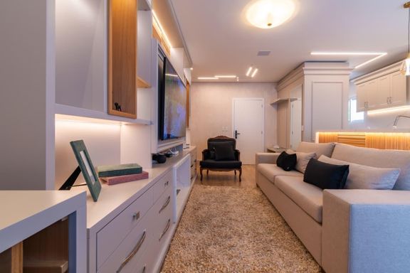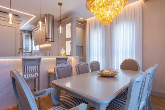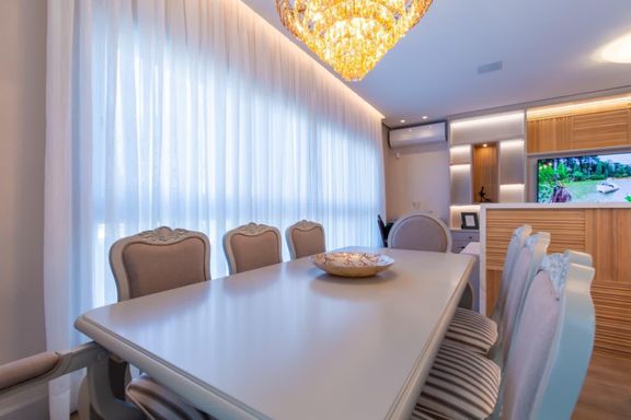 Apartamento novo finamente mobiliado, equipado e decorado, possui 3 dormitórios sendo 2 suíte, sala de estar aconchegante, janela grande, ambientes integrados para melhor convivência familiar, cozinha totalmente mobiliada e equipada, com churrasqueira, eletros modernos e funcionais para maior praticidade no dia a dia, sala de jantar com uma elegante mesa com 8 lugares, área de serviço integrada a cozinha.