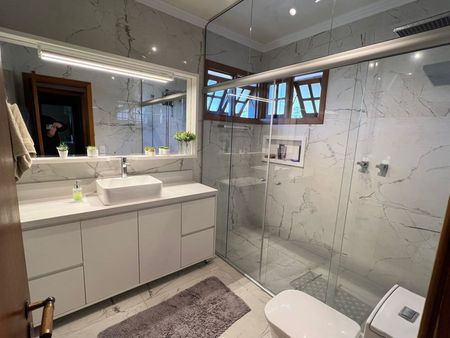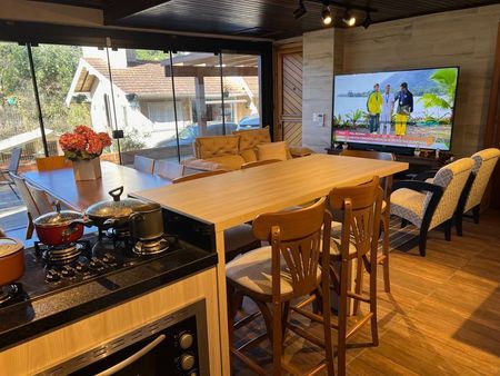 O coração da casa e principal ponto forte dessa é o espaço gourmet no andar inferior da casa, com sala de estar ampla, cozinha completa churrasqueira, sala de jantar e calefator, possui também ambiente 2 ambientes separados de home office com hall de entrada.