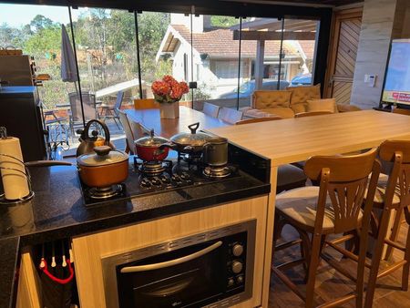 A sala de estar é um charme a parte com seus ambientes integrados e amplos, muita iluminação natural, calefator, para aquecimento dos ambientes, sala de jantar e cozinha planejada e recém reformada com movéis embutidos e planejados.