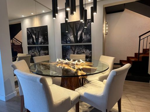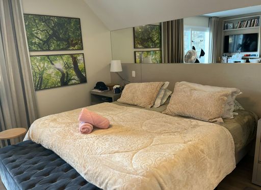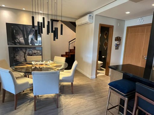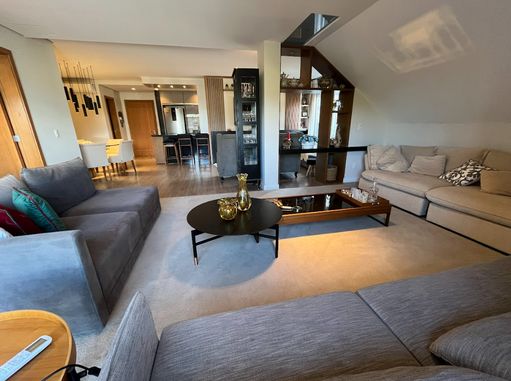 Excelente apartamento duplex finamente mobiliado, decorado e equipado com 200M² privativos, possui 4 dormitórios sendo uma suíte principal no andar térreo, com sacada e closet, e uma no andar superior, ampla sala de estar com uma linda sacada e vista para a avenida Borges de Medeiros, sala de TV aconchegante com lareira e sacada lateral, sala de jantar, cozinha com churrasqueira, área de serviço e um lavabo.