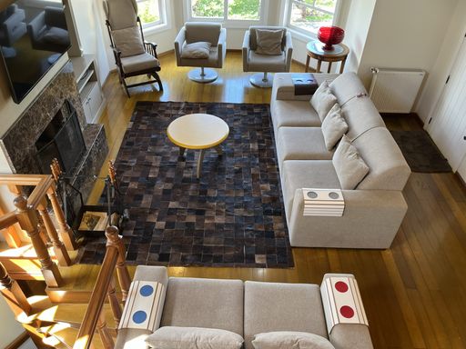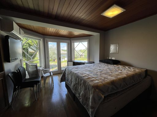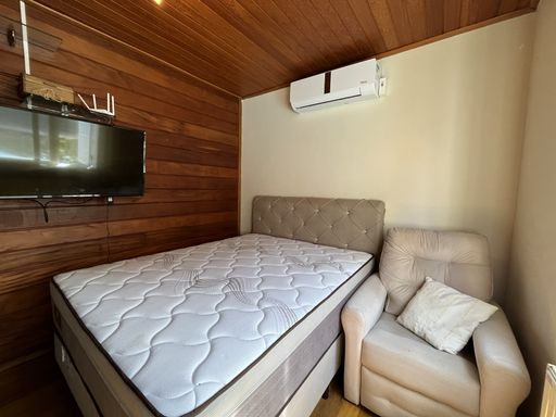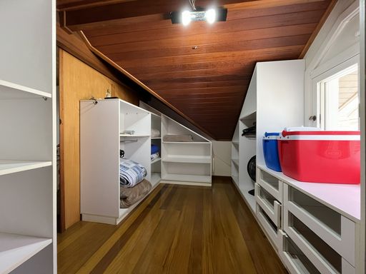 O grande trunfo desta casa é o andar inferior multifuncional. Com entrada estratégica, este espaço pode ser transformado no que sua rotina exigir: um escritório silencioso para home office, uma sala de cinema/estar íntimo ou até uma configuração para visitas, já que conta com amplo espaço e banheiro.