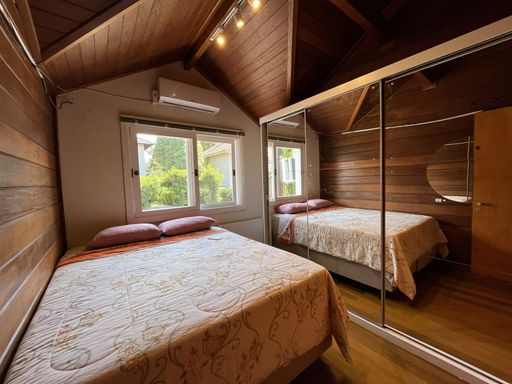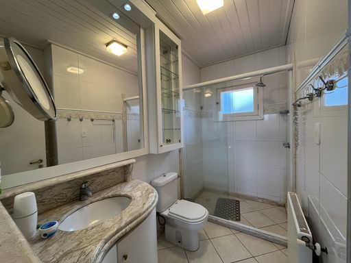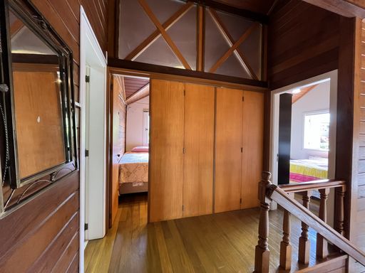 Subindo as escadas, a área íntima oferece total privacidade. Este pavimento conta com a suíte master com closet e sacada com vista e mais dois dormitórios, todos com excelente ventilação natural e um banheiro que serve de apoio para os dois dormitórios.